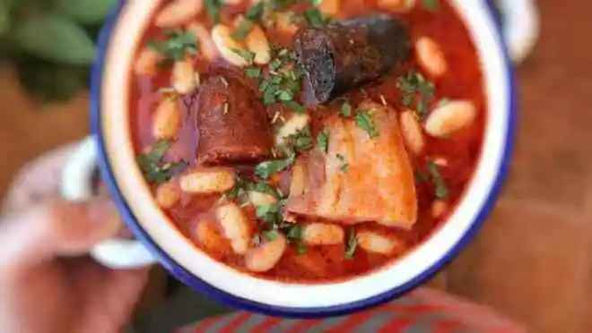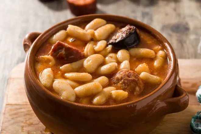 Hailing from the green, mountainous region of Asturias, Fabada Asturiana is a robust dish that warms both body and soul. At its core are white beans slow-cooked in a rich chicken broth infused with smoky paprika, garlic, and saffron. The stew gains depth from chunks of chorizo, blood sausage (morcilla), and bacon, creating a harmonious blend of spicy, savory, and earthy flavors. Dating back to the late 19th or early 20th century, this stew has become a symbol of Asturian hospitality, often served at communal gatherings and family feasts.