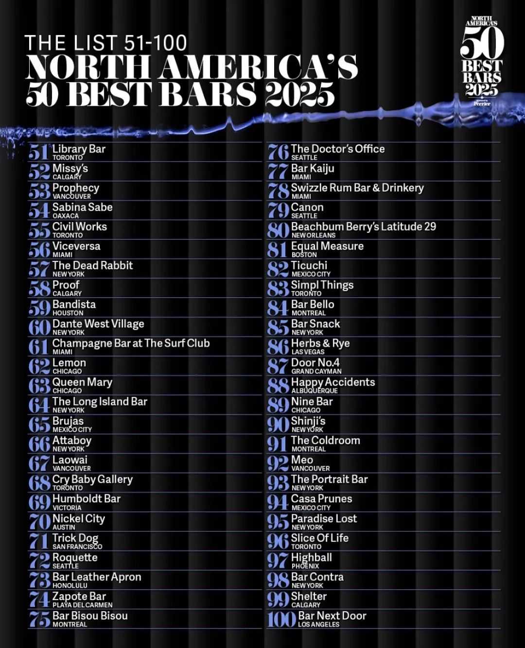 North America's 50 Best Bars 2025 Reveals Inaugural 51 - 100 Ranking