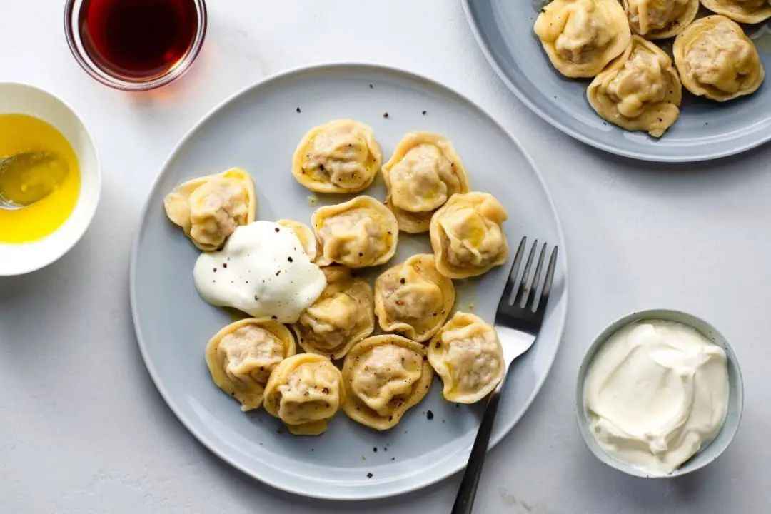 Russian dumplings, known as "Пельмени" in Russian, are written as "ear bread" in the local language. They are usually eaten with clear soup, sour cream, ketchup, or mayonnaise. Russian dumplings are very similar to traditional Chinese dumplings, but they have more choices for fillings. Sometimes eggs are added to the dough. Fillings can include meat (a mixture of one or more types), mushrooms, and more. Russian dumplings can be round or square in shape and are one of the characteristic dishes in Russia.