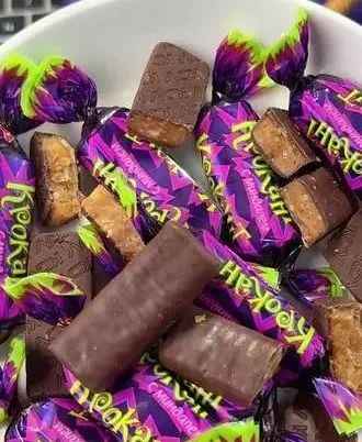 The Russian purple-foil wrapped filled candy is usually wrapped in purple sugar paper, which is why it is commonly called "purple candy". This candy first became popular on social media. After being spread by many people, it has become a popular online snack in China and is also one of the must-try foods when visiting Russia. This purple candy is actually a chocolate-filled candy, and the filling has a peanut flavor. It is sweet and crispy, and it is somewhat similar to Snickers. Some people have compared them. It is crunchier than Snickers and is very sweet. The peanuts inside are like the peanut brittle from 徐福记 (Xufuji), and it is coated with a layer of chocolate.