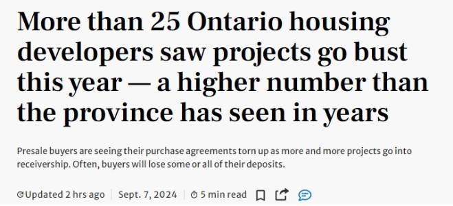 In this part of Canada, Ontario is experiencing a severe real estate crisis. This year, at least 27 developers have gone into receivership, an alarming number that has reached a multi-year peak. Experts say the surge in this number could put hundreds or thousands of housing units in limbo, putting the life savings of floorplan buyers at great risk.